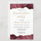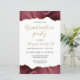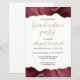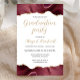 Este convite de festa de formatura moderno apresenta uma borda superior e inferior de geodo de ágata em aquarela em tons de vermelho burgundy com destaques de brilho dourado falso. As palavras "Festa de formatura" aparecem em uma fonte decorativa moderna de letra manuscrita dourada. Personalize o convite com o nome do formando em dourado, juntamente com a escola, ano de turma e detalhes da festa em cinza carvão em um fundo branco. O verso do cartão é branco sólido.
