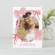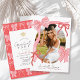 Este convite de festa de formatura coquete apresenta sua foto cercada por laços vermelhos e rosa desenhados à mão. O verso apresenta um fundo vermelho com um padrão de laços. Personalize-o de acordo com as suas necessidades. Você pode encontrar produtos correspondentes na minha loja.