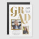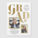 Um convite de formatura e anúncio de ímã moderno com uma sobreposição de tipo metálico em negrito e um design de duas fotos.