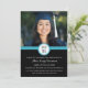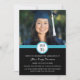 Convite de festa de formatura personalizado com cartão de foto em design moderno azul brilhante, preto e branco. Personalize este cartão de foto de formatura adicionando o ano da sua formatura, suas próprias fotos e os detalhes da sua festa de formatura.