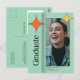 Celebre com estilo com este convite de formatura moderno em cartão postal com um layout arrojado e inspirado no estilo retrô, detalhes em estrelas e um design vibrante de convite de formatura com foto. Perfeito para convites de festa de formatura ou um convite de festa de graduação moderno, combina energia divertida com um visual simples e elegante. Personalize facilmente o modelo de convite de graduação com sua foto, nome e detalhes do evento para um toque verdadeiramente pessoal. Faça o seu momento brilhar e personalize o seu hoje.