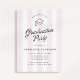 Este convite de festa de formatura elegante apresenta listras rosa suave combinadas com uma ilustração de boné limpa para um visual atemporal e comemorativo. O layout clássico cria um sentimento refinado e moderno, perfeito para homenagear o formando com estilo. Totalmente personalizável com os detalhes do seu evento, este convite define um tom polido para uma celebração de formatura memorável.
