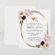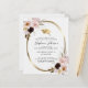 Convite de festa de formatura com rosas cor de rosa e boina em moldura metálica dourada... Nosso convite de festa de formatura floral acessível apresenta buquês de lindas rosas cor de rosa curvados em torno de uma moldura oval de folha metálica dourada em um fundo branco antigo. Dentro da moldura geométrica há um boné metálico dourado e uma borla seguidos pelo texto do convite em tipografia sans serif e script. Todo o texto pode ser facilmente revisado no modelo de personalização.