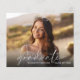 Convite de festa de formatura elegante e econômico com a foto do formando sobreposta com "formado" em um script moderno branco e o nome e ano de formatura em tipografia branca simples. No verso, adicione os detalhes da festa de formatura.