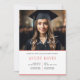 Convite mínimo de festa de formatura de uma foto. Texto personalizável em cinza e rosa.