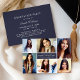 Celebre seu formando com este convite de festa de formatura moderno em azul meia-noite, apresentando uma colagem de fotos múltiplas e limpa, e tipografia clássica. O fundo azul-ardósia rico parece atemporal e sofisticado, mantendo o foco nas fotos. Personalize com o nome do formando, ano de formatura, escola e detalhes da festa.