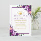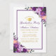 Cartão de Convite de Festa de Formatura Floral em Roxo Ultra Violeta e Dourado com Moldura Roxa - Aquarela