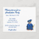Basta personalizar com as informações do seu evento! O design do convite estilo cartão-postal apresenta uma ilustração original feita à mão de um menino com um chapéu e toga de formatura azuis, segurando um diploma.