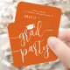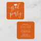 Esses convites de formatura são pequenos em tamanho, mas grandes em simplicidade elegante. Anunciem a conquista do formando e convidem familiares e amigos para celebrar com cartões de envelope laranja e branco de festa de formatura miniatura elegante. O tamanho pequeno, de cartão de visita quadrado, facilita a inserção com anúncios de formatura ou para distribuir a familiares e amigos (eles não vêm com envelopes). Vendidos em pacotes a um preço acessível, esses inserts oferecem uma opção sofisticada para ficar dentro do orçamento. O texto neste modelo é simples de personalizar, e as cores podem ser personalizadas usando a ferramenta de design da Zazzle. O design moderno laranja e branco apresenta caligrafia de estilo manuscrito com um chapéu de formatura e tipografia clássica elegante. Este cartão de convite de formatura é uma maneira única de anunciar a celebração de um dia especial. Parabéns ao formando!