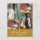 Adicione suas fotos favoritas a esses cartões-postais de convite para festa de formatura com um graduado e "turma de" em letras elegantes sobre um fundo dourado da cor da escola na frente. Mais designs e cores em nossa coleção.