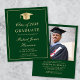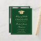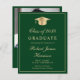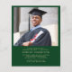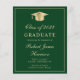 Convite de festa de formatura universitária verde e econômico, apresentando um chapéu de graduado dourado, o nome do graduado e o ano de conclusão em uma elegante caligrafia dourada, e a escola, curso e honrarias em tipografia serifada clássica dourada. No verso, adicione uma foto e personalize os detalhes da sua festa. Este papel semi-brilho econômico é semelhante em peso ao papel fotográfico - uma versão mais grossa e tradicional em papel cartão também está disponível (envie-nos uma mensagem para o link).
