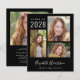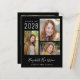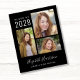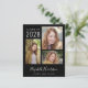 Convite de festa de formatura preto econômico e anúncio de formatura com uma colagem de 3 fotos, "Graduate" em um script branco estiloso, e o nome do formando, ano de formatura e escola ou universidade em tipografia branca moderna. No verso, adicione uma foto adicional e os detalhes da sua festa de formatura.