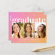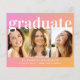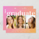 Convite à festa de formatura cor-de-rosa e laranja, favorável ao orçamento, com uma colagem de três fotografias do formando, "formando" com uma letra branca tendenciosa e o seu nome, ano escolar e de aula com uma simples tipografia branca moderna. A parte traseira apresenta "festa de formatura" na mesma fonte em negrito e detalhes de sua parte.