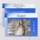 Um cartão moderno para um convite de festa de formatura com uma paleta de cores azul. O raio azul irradia de um único ponto no canto superior esquerdo. Um fundo semelhante no verso do cartão contém os detalhes do convite. O texto do ano de formatura na frente e o texto de informações no verso são facilmente alterados usando o modelo. O mesmo vale para a foto. Para quaisquer outras alterações desejadas (fontes diferentes, cor, tamanho ou posição OU para redimensionar ou reposicionar a imagem do texto "Graduado" na frente), selecione "Personalizar este design" e, em seguida, selecione "Editar usando a Ferramenta de Design". Embora o texto especifique um graduado do ensino médio, ele pode, é claro, ser alterado com o modelo para indicar uma faculdade ou outra instituição.