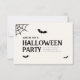 Convide seus amigos e familiares para uma celebração assustadora com este convite de festa de Halloween elegante. Com letras góticas em negrito, morcegos voando e um sutil acento de teia de aranha, este design define perfeitamente o tom para uma noite de diversão festiva. Personalize com os detalhes da sua festa, incluindo nome do anfitrião, data, hora e local. Impresso em papel cartão de alta qualidade, é ideal para enviar aos convidados ou distribuir pessoalmente. Uma ótima escolha para quem está organizando uma reunião de Halloween, desde festas a fantasia até encontros familiares.