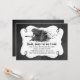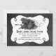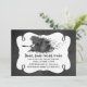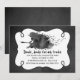 Convite de festa de Halloween feito em uma aparência de quadro-negro cinza com gráficos de uma área de texto branca emoldurada em preto e arte de aquarela de uma bruxa voadora. Personalize o texto preto para a sua festa de All Hallows Eve.