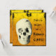 Mande um convite para a festa do Dia das Bruxas adulto arrepiante com este crânio brilhante num fundo de laranja e preto. Os itens correspondentes são mostrados abaixo.