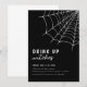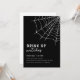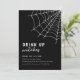 A temporada assustadora chegou. O convite apresenta um design elegante, com fundo preto e teia de aranha no canto. No centro, os detalhes da festa são lindamente escritos em um texto branco que exala um ar de diversão assustadora. Dê boas-vindas aos convidados para o seu próximo coquetel, jantar ou festa de Halloween com estilo. Cor de fundo e texto são editáveis.