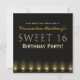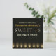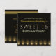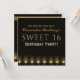 Convite de festa de Hollywood em preto e ouro para debutante de 15 anos. Personalize a frente e o verso para o seu evento com tema de Hollywood.