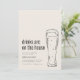 Convide amigos e familiares para celebrar sua nova casa com um convite encantador para uma festa de inauguração com o tema divertido "As Bebidas São por Conta da Casa". O fundo é um bege quente, criando uma atmosfera acolhedora e aconchegante. No lado esquerdo, os detalhes da festa são apresentados em uma fonte preta simples, garantindo clareza e elegância. À direita, uma ilustração minimalista de um chope adiciona um toque de diversão e personalidade ao design. Este convite combina perfeitamente um tema leve com uma estética elegante, prometendo uma celebração de inauguração deliciosa e memorável.