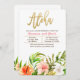 Convite de Festa de Inauguração da Casa com Tema Tropical de Aloha. Crédito da imagem floral: etsy.com/shop/StudioEquinoxArt