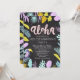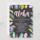 Convite de festa de inauguração da casa tropical com quadro-negro de palmeiras Luau Aloha. Crédito da imagem: por Bosotochka