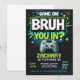 Torne o aniversário do seu filho um sucesso com nosso convite de videogame BRUH Are You In! Projetado para meninos e meninas que amam jogos, este convite exclusivo define o tom perfeito para uma celebração de aniversário emocionante. Com gráficos em cores vibrantes e um tema divertido 'BRUH, Are You In?', é perfeito para idades entre 7 e 16 anos. Deixe seu filho convidar os amigos para a festa épica com estilo, usando este convite divertido e personalizável. Traga a energia e a emoção dos jogos diretamente para o dia especial deles com este design inesquecível!