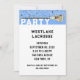 Convites de festa temáticos de lacrosse criativos para personalizar facilmente para jogador de lacrosse, treinador, noite de seniors do time azul ou celebração de evento esportivo.
