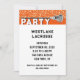 Convites de festa temáticos de lacrosse criativos para personalizar facilmente para jogador de lacrosse, treinador ou celebração de festa da equipe laranja.