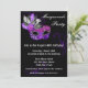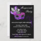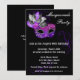 Convite de Festa de Mascarada. Um convite sofisticado e elegante com uma máscara de mascarada prateada e roxa perfeita para uma festa de debutante ou celebração de Mardi Gras.