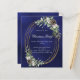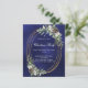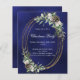 Um fundo azul-marinho de cor irregular decorado com cones, bagas brancas e folhagens. Uma moldura oval dourada falsa. Personalize e adicione os detalhes.