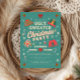 Defina o tom para uma noite de diversão festiva com este convite de festa de Natal de Suéter Feio em tom azul turquesa retrô. O design apresenta um fundo de tricô aconchegante, bastões de doces alegres, flocos de neve divertidos e suéteres feios coloridos que capturam o caos alegre das festas de fim de ano. A tipografia vintage em negrito destaca os detalhes do seu evento, mantendo o clima leve e alegre.