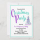 Este convite de festa de árvore de Natal apresenta uma estrela de três camadas em prata falsa e brilho de prata, orquídea e um design abstrato turquesa na frente e no verso. É emoldurado por turquesa na frente e brilho de prata falsa e orquídea no verso. Preencha os campos do modelo ou remova as informações para a sua festa.