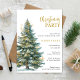 Convite de festa de Natal moderno com árvore de Natal e sotaque dourado.