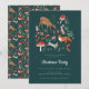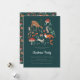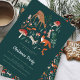 Convite verde rústico fofo com uma ilustração clássica tradicional de Natal verde e rosa nostálgica com animais da floresta na natureza com neve. Perfeito para convidar seus entes queridos para uma festa de Natal. Arte original de Caroline Bonne Müller