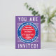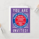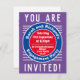 Cores brilhantes e design ousado. Cartão de convite para Festa de noivado do casal.