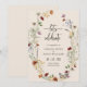Convite de festa de noivado Boho. Este convite de noivado elegante e sofisticado apresenta belas flores silvestres pintadas à mão em aquarela, dispostas em um lindo buquê perfeito para casamentos de primavera, verão ou outono. Encontre itens correspondentes na Coleção de Casamento Boho Wildflower.