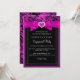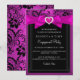 Convite de festa de noivado rosa. Laço rosa com coração de joia e design floral preto. POR FAVOR, observe que todas as imagens planas! Elas NÃO têm laços, diamantes ou joias reais!!