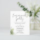 Este convite de festa de noivado com folhas verdes botânicas para orçamento modesto pode ser personalizado com suas informações em tipografia elegante com suas iniciais monogramadas no verso. Criado por Thisisnotme©