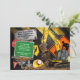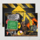 Este convite único apresenta uma escavadeira realista brincando na lama cercada por ferramentas de trabalhador. Personalize com os detalhes da sua festa em um sinal de trânsito.