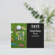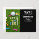 Convite de festa de par tee de golfe com bola de golfe e tees coloridos estão na grama verde.
