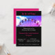 Imagem de uma roda-gigante em fundo preto com detalhes da festa na frente. Parte de trás tem fundo rosa com um ícone de roda-gigante.