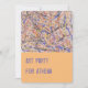 Imagem de uma pintura abstrata em fundo de pêssego na frente com detalhes da festa no verso.