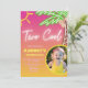 Design de convite vibrante e animado que combina elementos tropicais com cores neon ousadas. É perfeito para eventos como festas de piscina, festas havaianas, celebrações de aniversário ou qualquer ocasião em que você queira injetar um senso de diversão e emoção