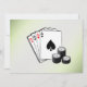 Convite de festa de pôquer verde para despedida de solteiro. Mãos de pôquer com ases e fichas de pôquer - Completo com RSVP