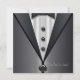 Convite elegante de smoking preto com camisa branca e gravata borboleta preta na frente e um vestido de noite sem alças com colar de diamantes no verso. Este é um modelo de convite de festa ou evento versátil para qualquer festa ou ocasião especial. O design da frente e verso também está disponível em envelopes.