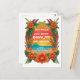 Convite de festa de reggae colorido com um pôr do sol na ilha rodeado por flores tropicais