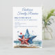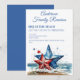 Convite de festa de reunião de praia elegante vermelho branco e azul.