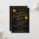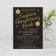 Este divertido convite de festa de aniversário de casamento surpresa apresenta fundo preto com balões e estrelas glitter dourado falso. Tem um charme elegante e caprichoso com um toque estiloso. Para 5º, 10º, 15º, 20º, 25º, 30º, 35º, 40º, 45º, 50º ou qualquer um entre eles!