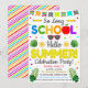 Faz um ótimo convite para celebrar o fim das aulas e dar início à temporada de verão. O convite funciona muito bem para eventos de festa escolar patrocinados pela sala de aula, escola ou PTO/PTA! Comece o verão com uma mensagem festiva e colorida.